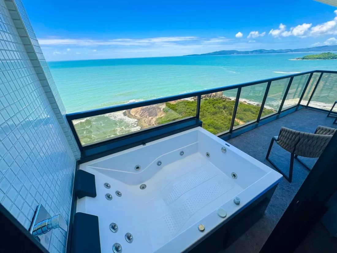Cada uma dessas unidades conta com banheiras de hidromassagem fornecidas e instaladas pela Artzzen, seguindo os mais altos padrões de qualidade. O resultado são ambientes de banho integrados à vista para o mar, com conforto térmico, jatos relaxantes e acabamento sofisticado — uma verdadeira imersão em conforto.