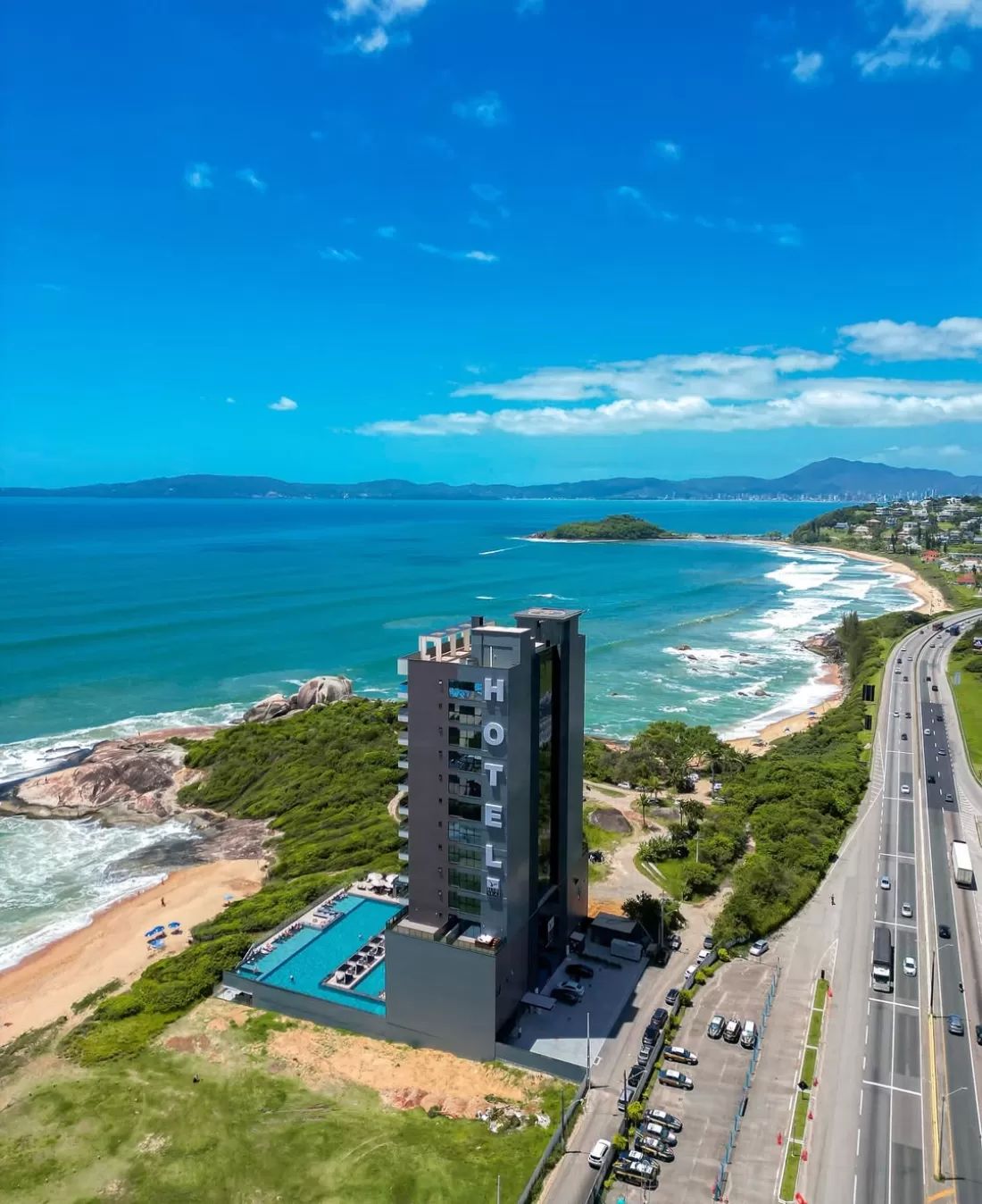 O Hotel Blue Sea conta com mais de 110 suítes distribuídas em 11 andares, todas com vista para o mar e infraestrutura de alto padrão. Além das suítes com hidro, o hotel oferece piscina aquecida, espaço fitness, playground, sala de jogos, spa, restaurante, bar e uma sala de convenções com capacidade para 250 pessoas.